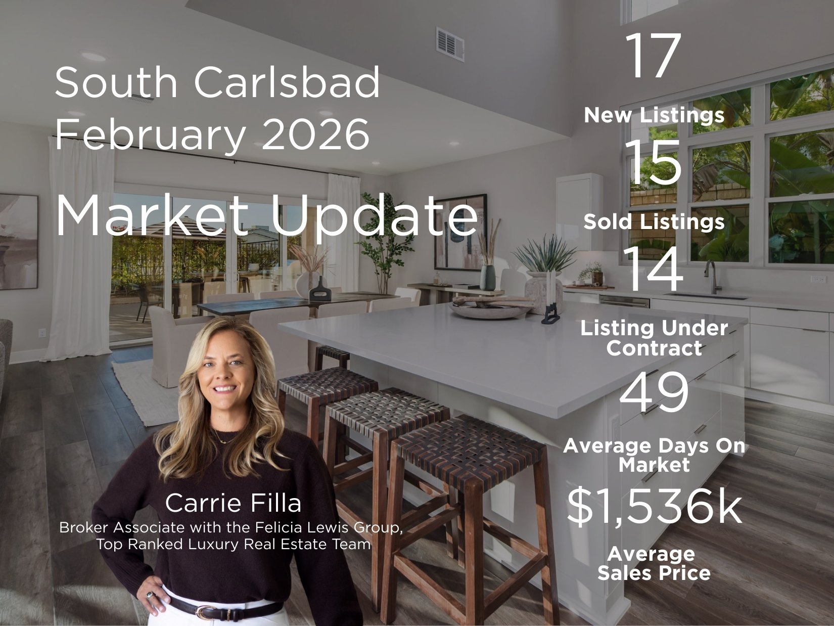 Carrie Filla has spent years building deep roots in South Carlsbad's coastal communities. With hands on knowledge of Aviara, Poinsettia, and the surrounding 92011 neighborhoods, she brings the kind of hyperlocal insight that only comes from truly living and working in the market.